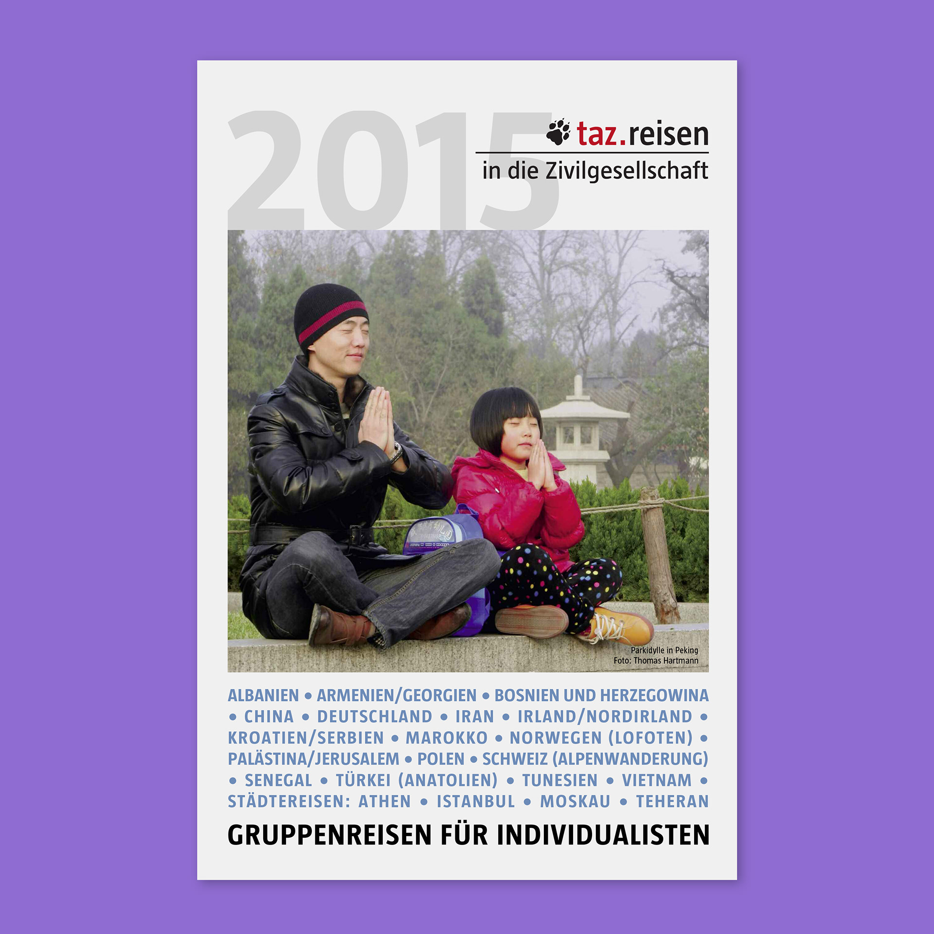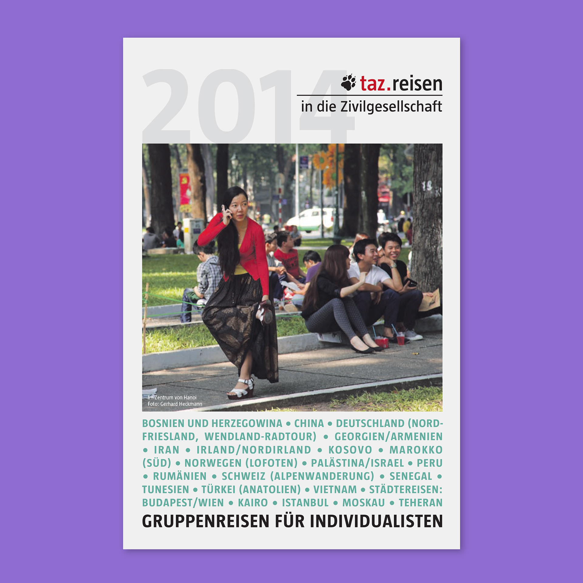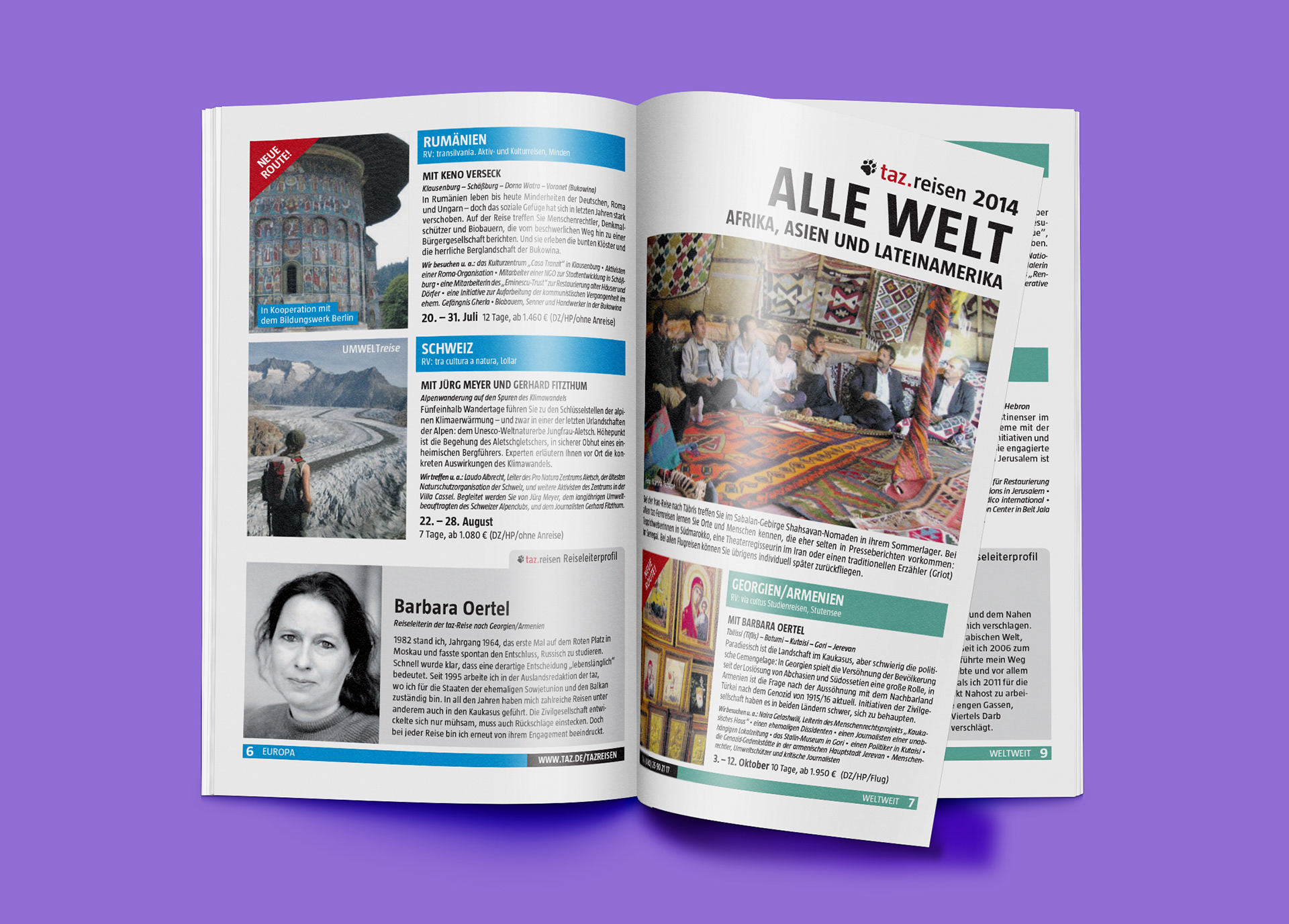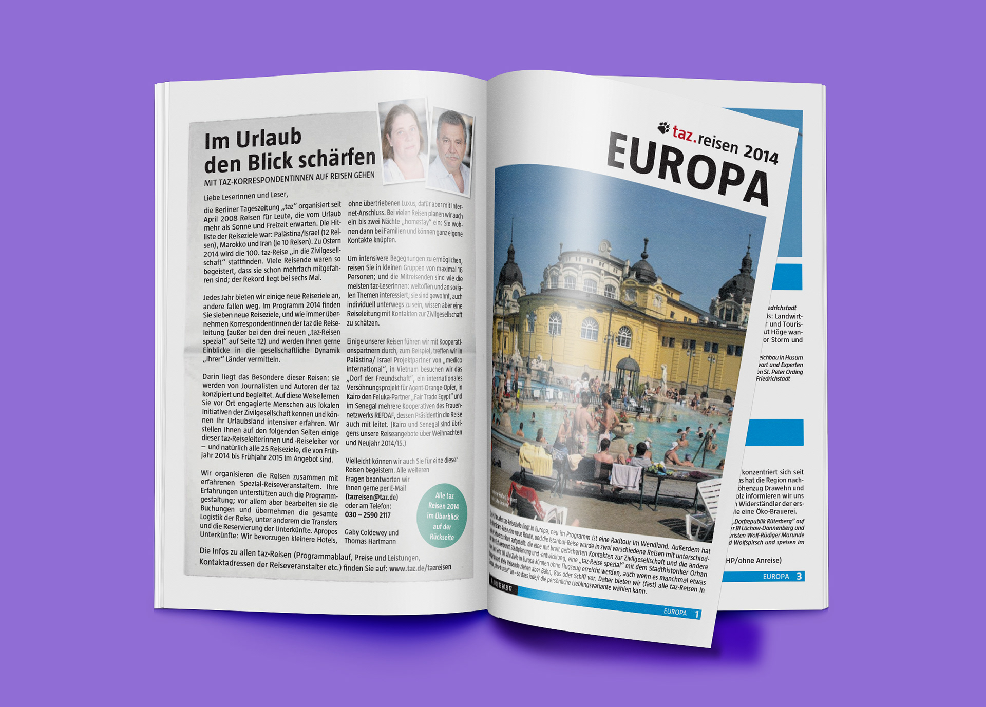 Until covid-19 came along and disrupted world travel, this was an annual project for the taz. Together with Thomas Hartmann and Gaby Coldewey we created these yearly brochures highlighting the travel experiences offered by the taz.
